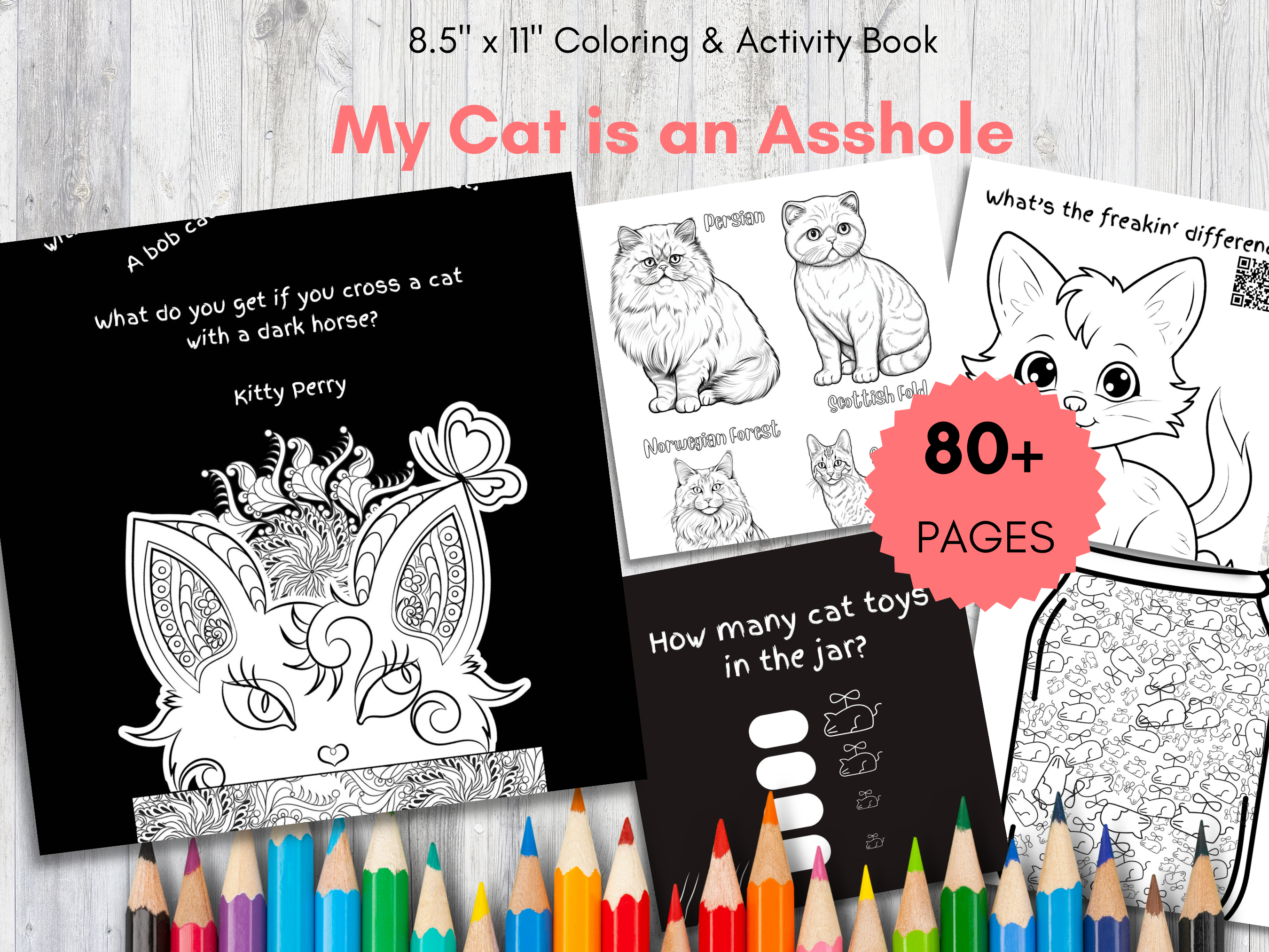 My Cat is an Asshole - Adult Colouring & Activity Book (Print at home PDF)
